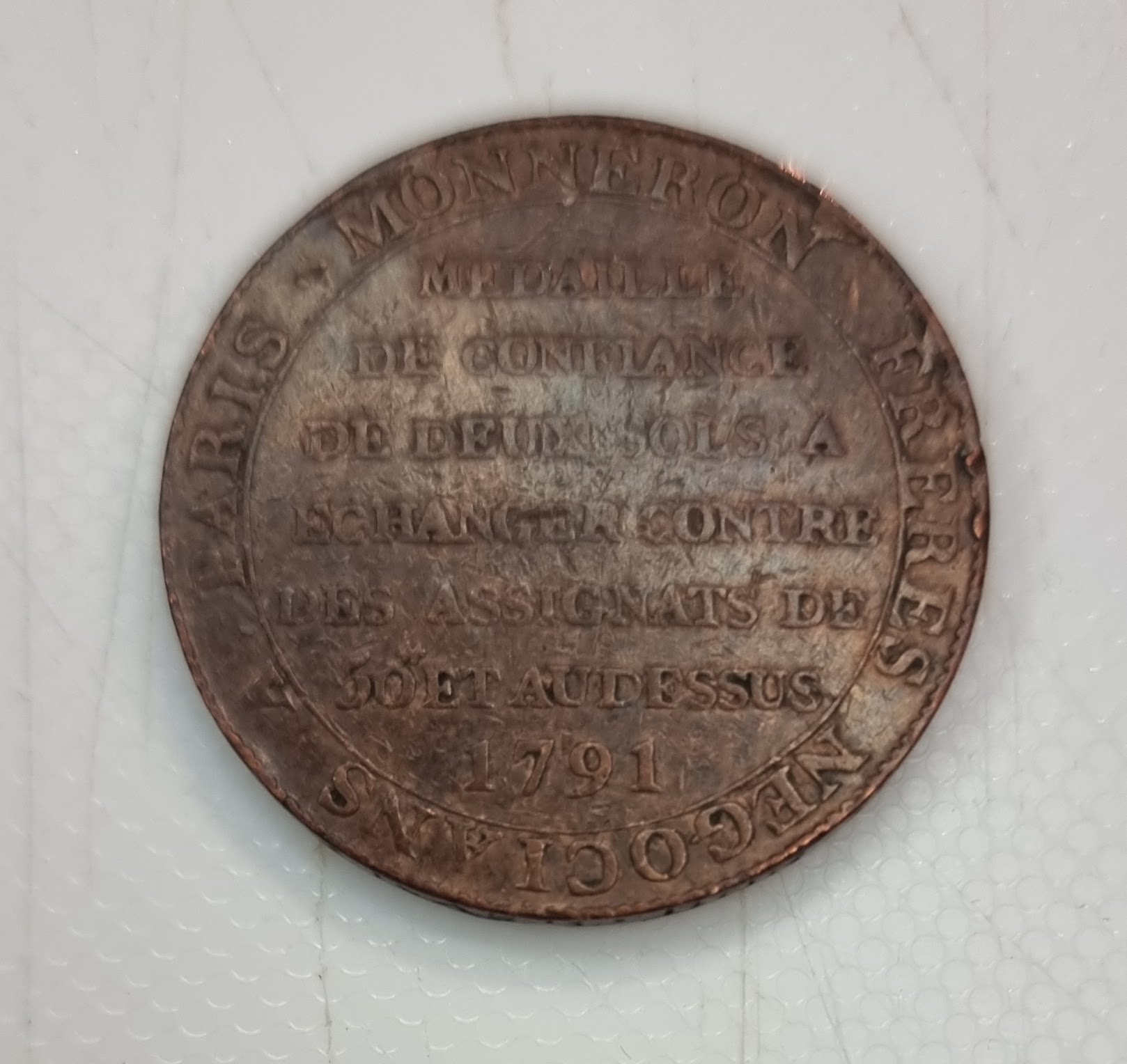 MEDAILLE de Confiance Monneron de 2 SOLS 1791 à la Liberté
