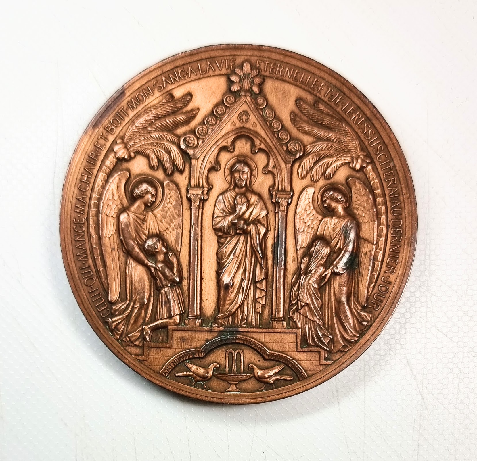 MEDAILLE du Baptême à la 1ère Communion 1885 Très Belle