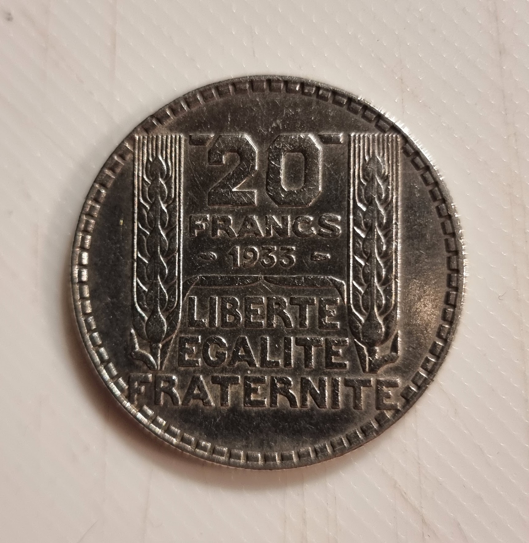 Pièce de 20 Francs Turin 1933 RL TTB Argent EB90811